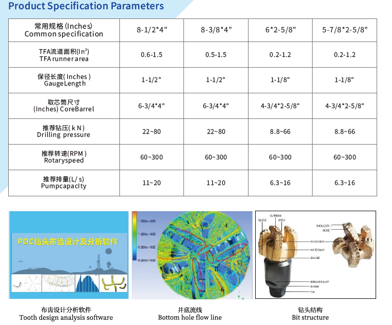 This type of drill bit adopts professional software for PDC cutter layoutdesign and mechanical analysis. It uses high-end PDC cutters with high wearresistance and strong impact resistance, featuring a wide range of applicableformations, high drilling efficienc y, long ser vice life, and excellentcomprehensive performance. The structure can be adjusted according todifferent lithologies and requirements.